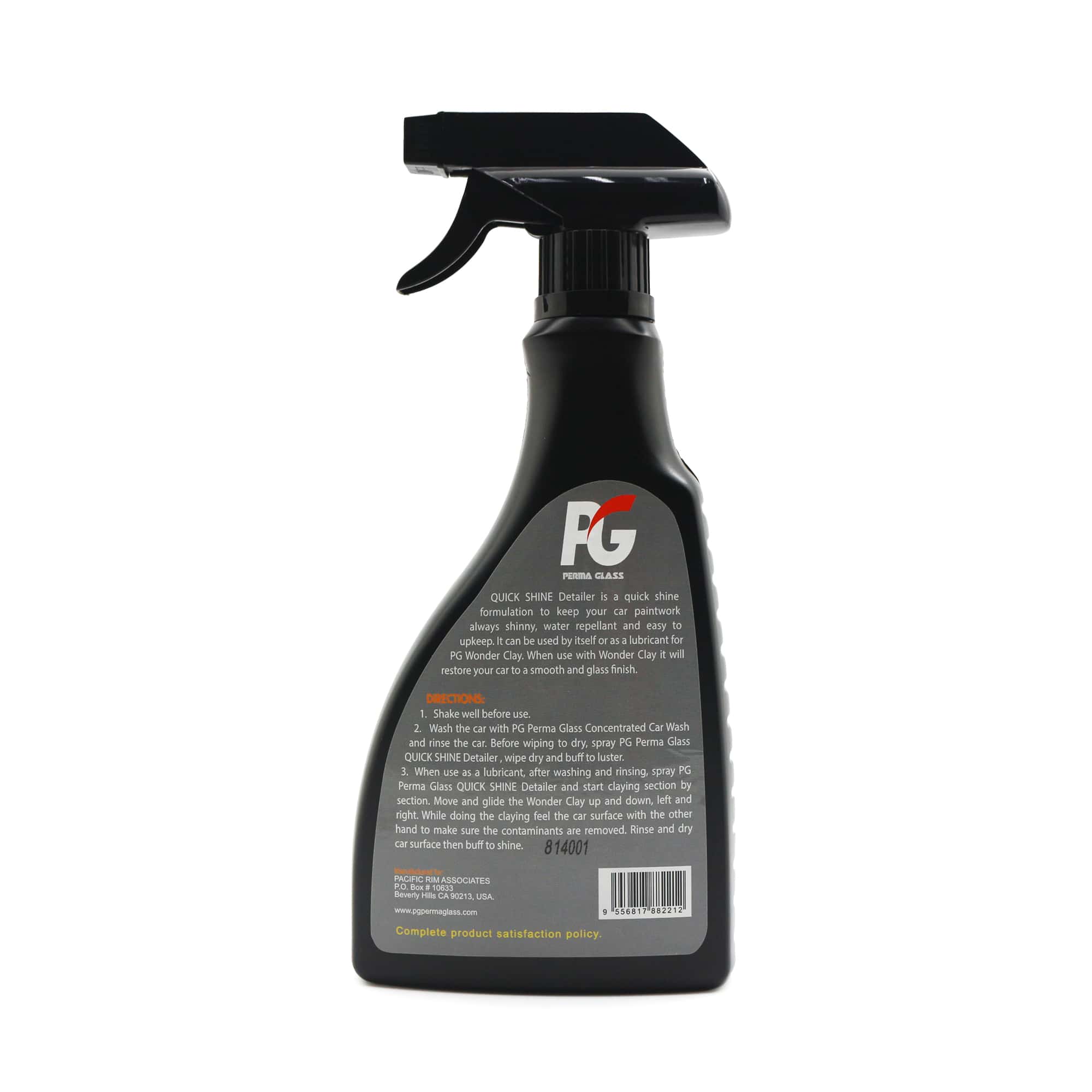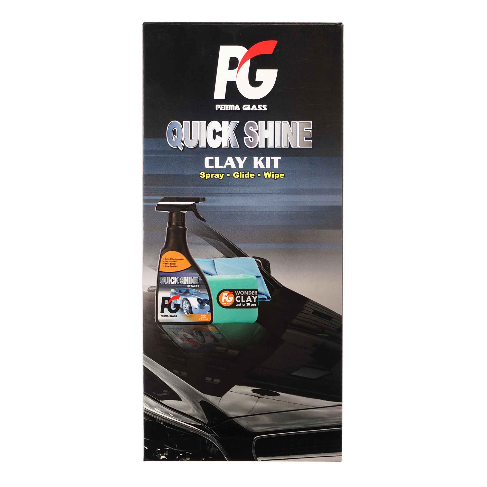 Make your wax or sealant coating last longer by using PG Perma Glass Wonder Clay to safely remove the surface contaminants on the clear coat. PG Perma Glass Quick Shine Clay Kit is an easy up-keep maintenance system compared to conventional waxing. The product is water-based liquid fortified with Polymer Sealant and Carnauba Wax which is a perfect maintaining after wax or sealant. Just spray, glide and wipe to freshen up your vehicle’s paintwork. It also works as clay lubricant to make claying process easier. After the application, the results are glass smooth, water repellant and shine finishing surface.